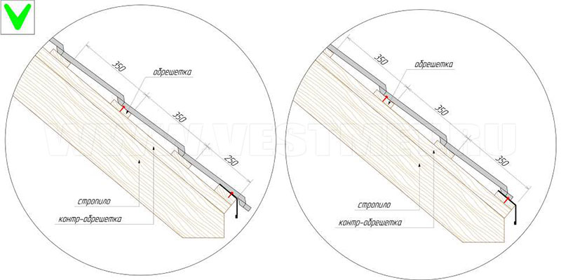 Саморез в обрешетке не должен проворачиваться, что приведет к ослаблению
