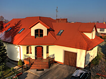Кровельное покрытие Декра придает крыше, а следовательно, и всему дому более нарядный вид. Чаще всего такие здания приобретают типично европейский облик (особенно при использовании коллекции Roman), но бревенчатый дом, покрытый черепицей Декра, может смотреться, как настоящий русский терем - ведь продукция под маркой Icopal Decra включает, например черепицу, внешне почти неотличимую от дранки из натурального дерева. В этом вы можете убедится, посмотрев на фотографии домов с крышей из композитной черепицы Decra (Декра) от компании "Вестмет".