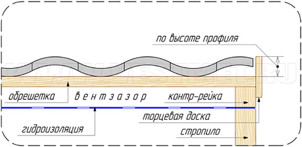 Торцевые планки монтируются от карниза к коньку с нахлестом около 10 см.