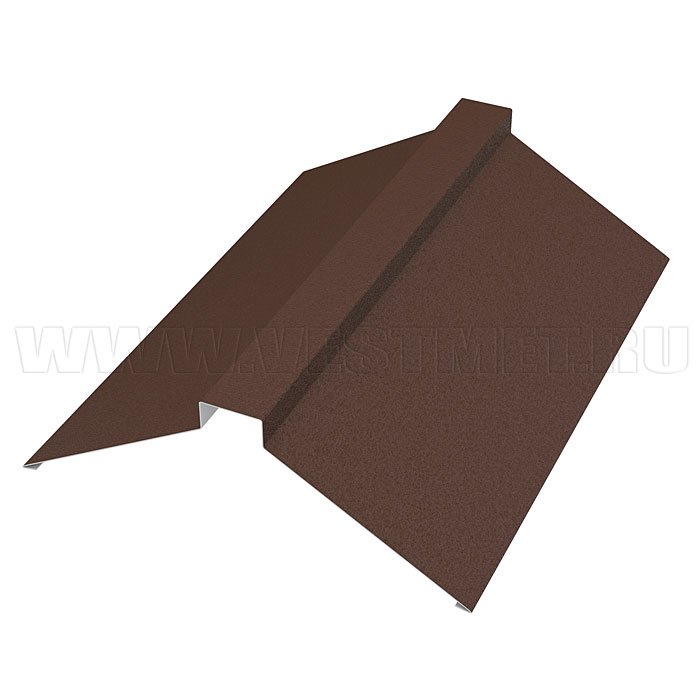 Элемент декоративной формы, закрывает срезы листов металлочерепицы на коньковом стыке. Защищает подкровельное пространство от возможности попадания грязи и влаги. | ||