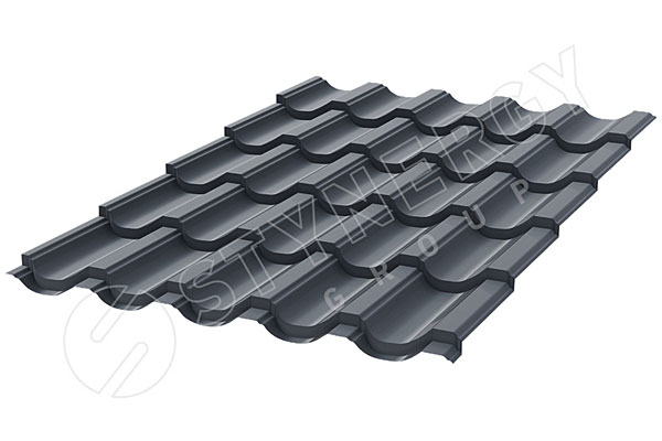 Металлочерепица Stynergy Garda имеет рельефные, выразительные очертания: по краям массивного гребня идут дополнительные канавки, а прогиб волны является симметрично скругленным. Такой профиль позволяет сформировать дополнительные ребра жесткости и увеличить прочность покрытия. Высота ступеньки составляет 30 мм, и материал выглядит выразительнее, подходит для крыш даже большой площади. Стинержи Гарда имеет стабильную геометрию: листы аккуратно стыкуются по краям, стыки незаметны.