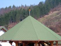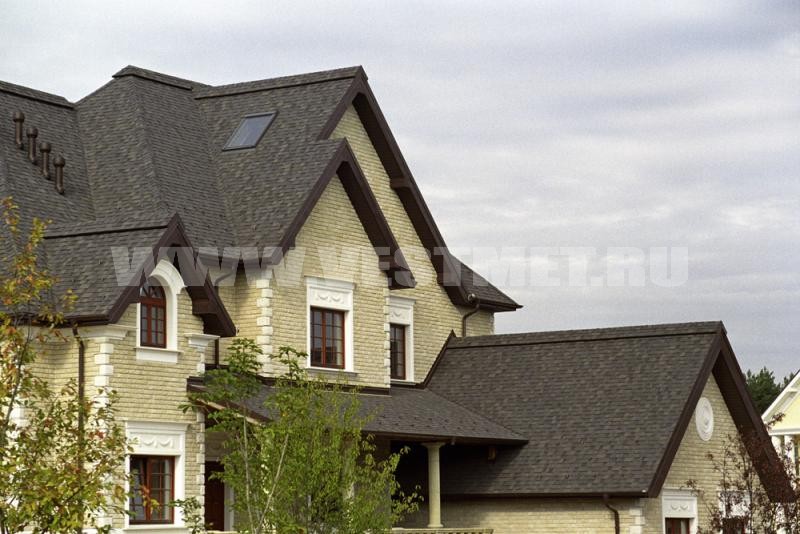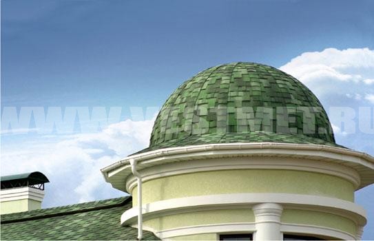 На фото в галерее компании «Вестмет» — примеры крыш из гибкой черепицы разного цвета, с разной нарезкой. Фото показывают, что рисунок мягкой кровли выглядит объемно, как черепичная кладка. Покрытие хорошо сочетается с фасадами из разных материалов, подходит для любого архитектурного стиля. На представленных фотографиях хорошо видно, как гибкая кровля используется при оформлении крыш нестандартной формы: купольных, скругленных, криволинейных.