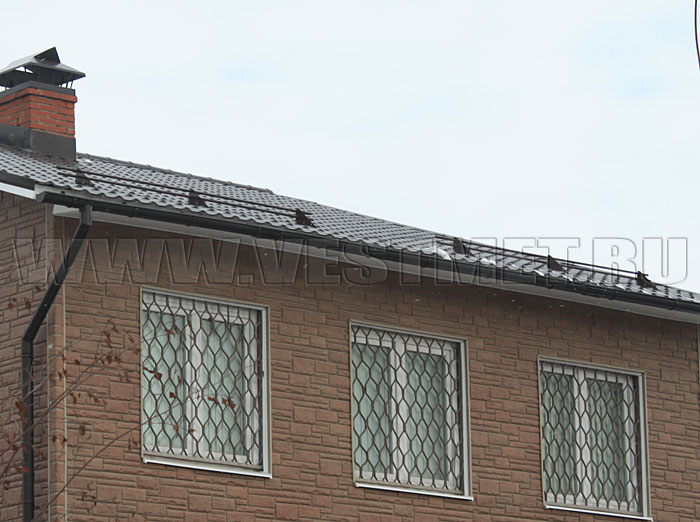 Снегозадержатели — элементы безопасности кровли. Зимой удерживают снежную массу на крыше, распределяют снеговую нагрузку, пропускают снег вниз небольшими порциями. Если они подобраны и установлены правильно, они выглядят на крыше аккуратно, не портят ее внешнего вида. Убедиться в этом можно с помощью фото в нашей галерее. На них — примеры установленных элементов кровельной безопасности. По цвету их выбирают в тон к покрытию кровли. Конструкция, прочность, количество, расположение должны соответствовать предполагаемой снеговой нагрузке.