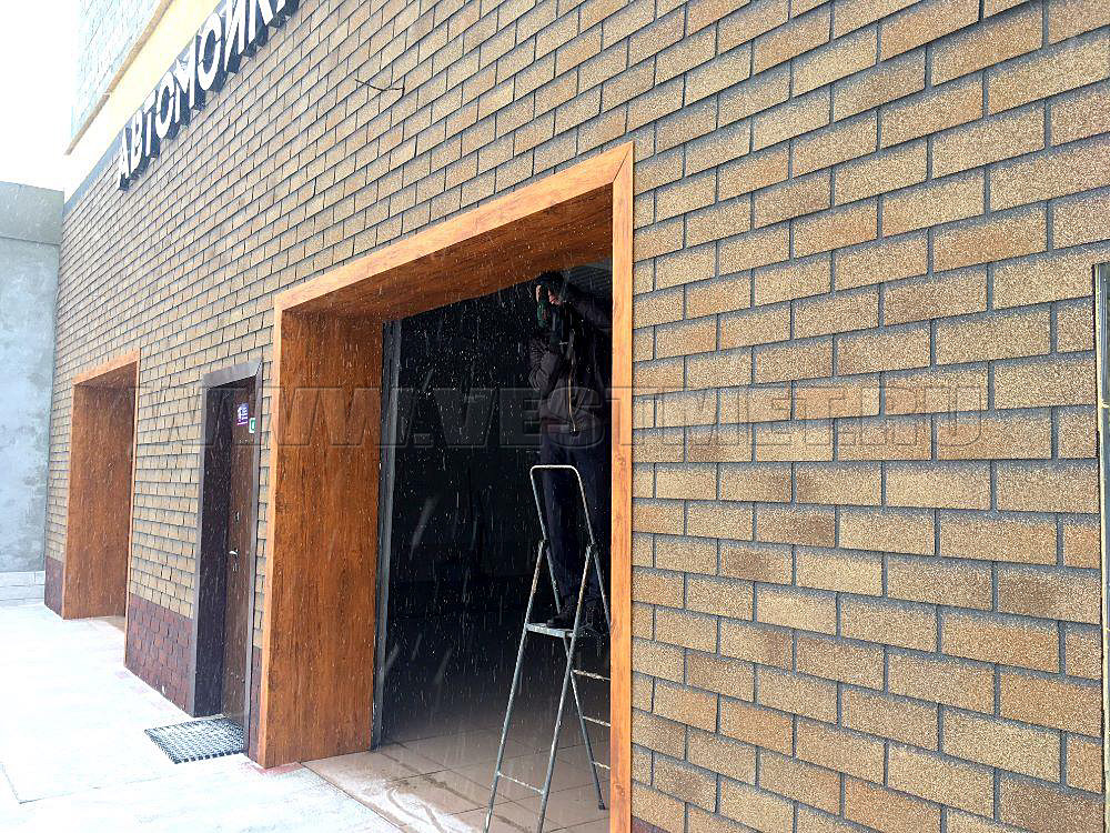 фасадная плитка отлично сочетается с другими облицовочными, строительными материалами, включая деревянные балки, пластиковые доборные элементы и пр.