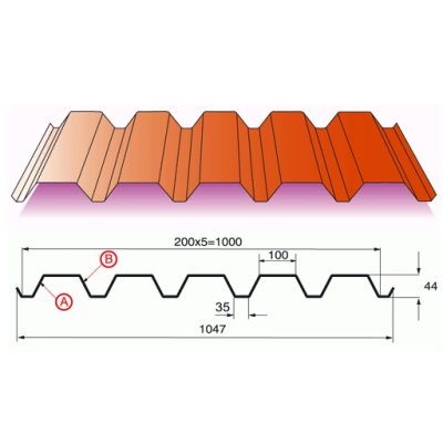 Габаритная ширина профлиста 1047 мм